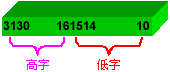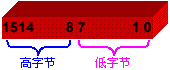 由2个字节组成一个字,其最高位是第15位,最低位是第0位。高8位称为高字节,低8位称为低字节,如右图所示。 字节和字是汇编语言程序中最常用的两种数据类型,也是最容易出错的数据类型。 |