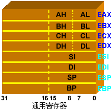 32位CPU所含有的寄存器有(见图2.1中的寄存器): |