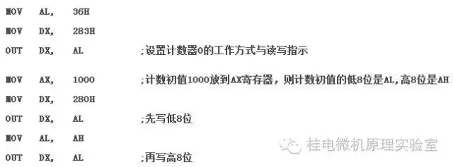 例如:设置计数器0的工作方式是方式3,计数初值是1000,二进制形式。