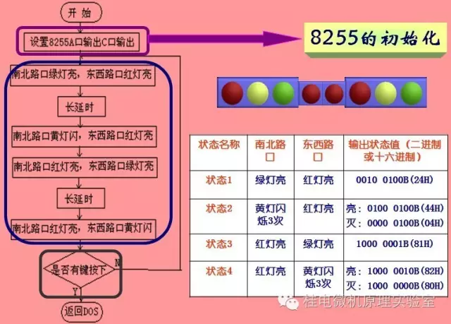 2. 通过并行接口8255实现十字路口交通灯的模拟控制,进一步掌握并行接口的使用。